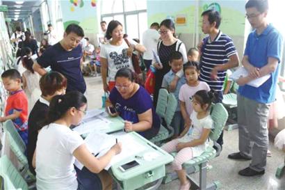 李沧区外来务工子女入学登记现场。