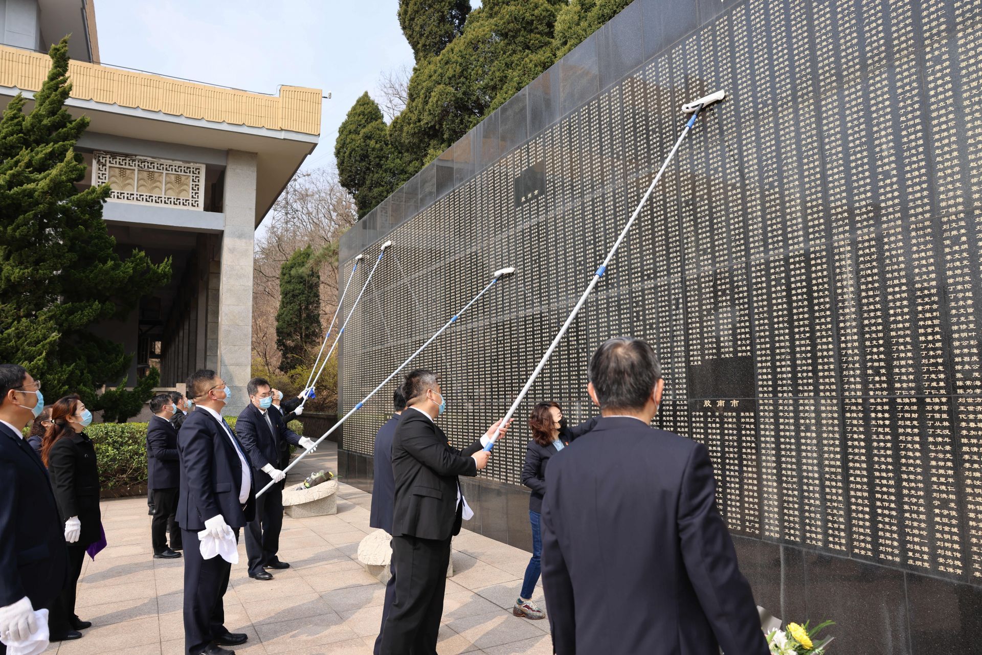 随后,大家来到英名碑前,拿起毛巾和其他清洁工具,仔细擦拭英名碑上每一名烈士英名,清扫英名碑广场环境卫生,共同致敬刻录在这方英名碑上在青岛革命、建设、改革各个时期牺牲的共17000余名烈士及未留下姓名的为了青岛解放英勇牺牲的7000余名无名烈士。