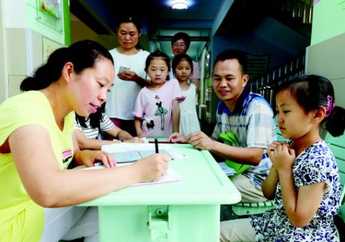 在创新便利的报名政策面前,很多报名点门口依然排起了长队,可见今年外来娃入学人数之多。