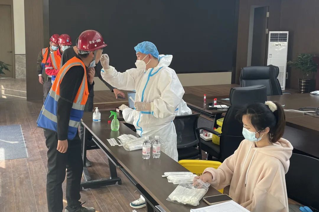 项目严格落实疫情防控举措,累计进行19轮核酸检测共计27853人次,施工现场严格落实封闭管理要求,以一看、一测、一亮码、一登记“四个一”管理要求,全面筑牢疫情防控举措。