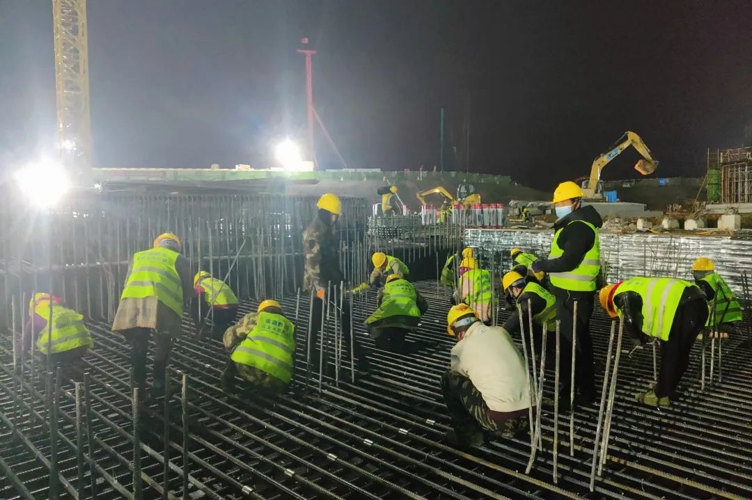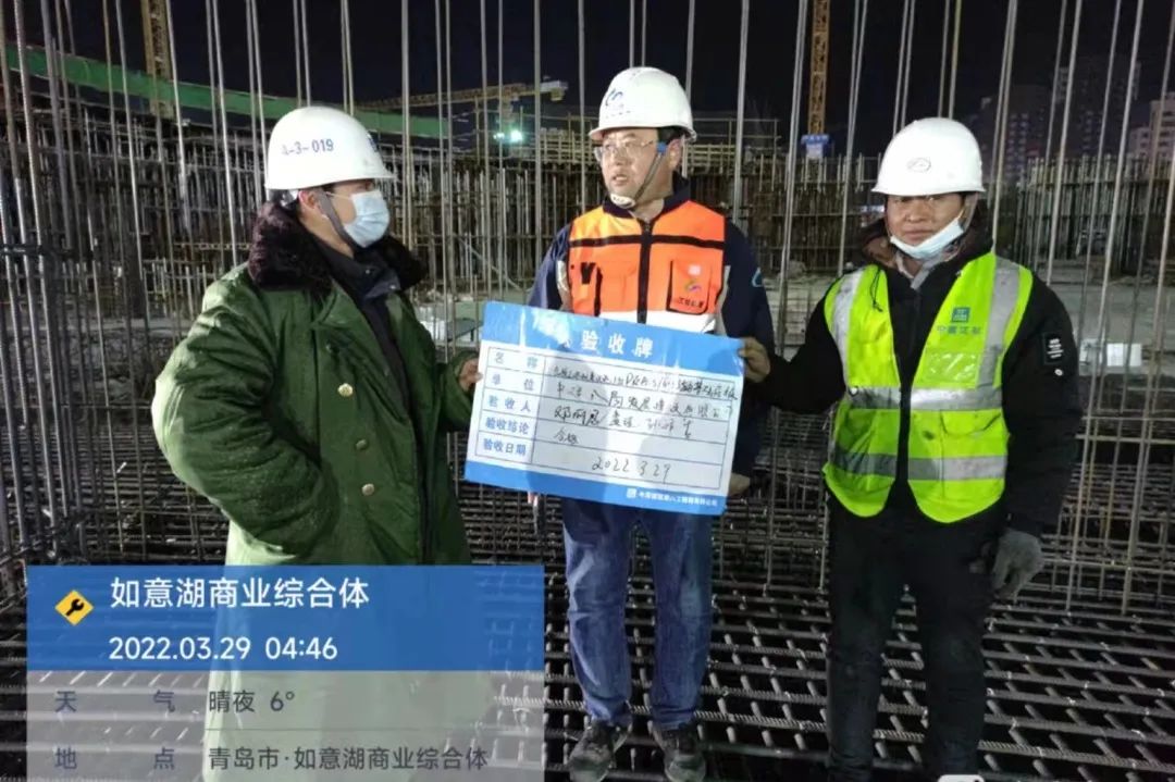 ▲ 凌晨4点46分综合馆地下室基础底板钢筋举牌验收