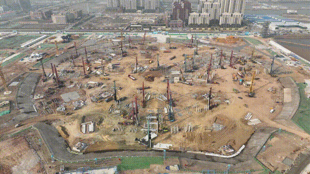 3月15日,项目首块地下室基础底板开始浇筑,3月31日完成元素区地下室结构施工,4月15日,完成综合馆地下室主体结构施工。