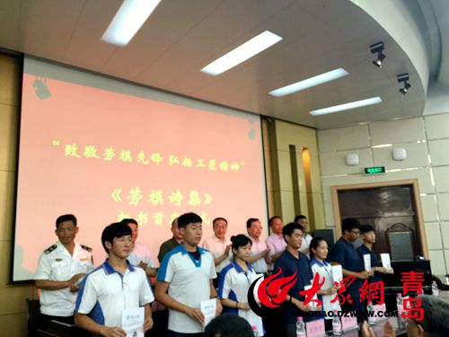 大众网青岛7月10日讯(记者 金红蕾)7月10日,一场名为“致敬劳模先锋,弘扬工匠精神”的劳模诗集新书首发仪式在青岛电子学校南校区隆重举行。全国总工会副主席、全国劳动模范许振超,山东省海员工会主席马骥,青岛市总工会副主席刘福斌,青岛市政协社会和法制委员会副主任王学刚,青岛航标处党委书记王国政,青岛市教育局副局长王铨,青岛市劳动模范、青岛电子学校校长崔西展参加仪式。