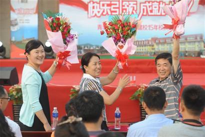 15年前青岛实验初中正式揭牌,15年来实验初中的校长、老师、学生共同努力成功创出了 “以人为本、快乐育才”的教育理念,并在正常教学和学校管理中践行这一理念,而这一理念的受益者则是一批又一批实验初中的毕业生们。校庆典礼上,15年前在实验初中揭牌仪式上献辞的学生代表衣然也出现在了校庆现场,当年的小姑娘如今已经成为中央电视台的主持人,她在现场表达了对两位恩师孙廻和徐靖的感谢之情,离开校园十几年,依然不忘当年恩师的谆谆教导和师生情,初中生涯的学习和历练为后来的深造打下了坚实的基础。她也作为校友代表为曾经在学校工作过的多位校长献花,感谢他们在学校的发展历程中付出的心血和作出的贡献。