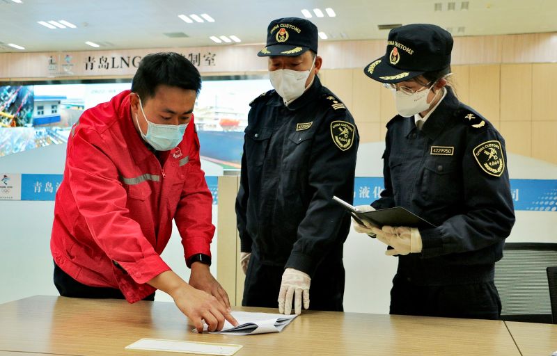 董家口港海关副关长郝爱忠表示,在当前疫情严峻形势下,海关不仅要服务企业快速通关,做到“人等船”“零待时”,还要做到严把疫情防控关,强化进口液化天然气接卸、储存、保税等环节监管,做好清洁能源保供稳价工作。