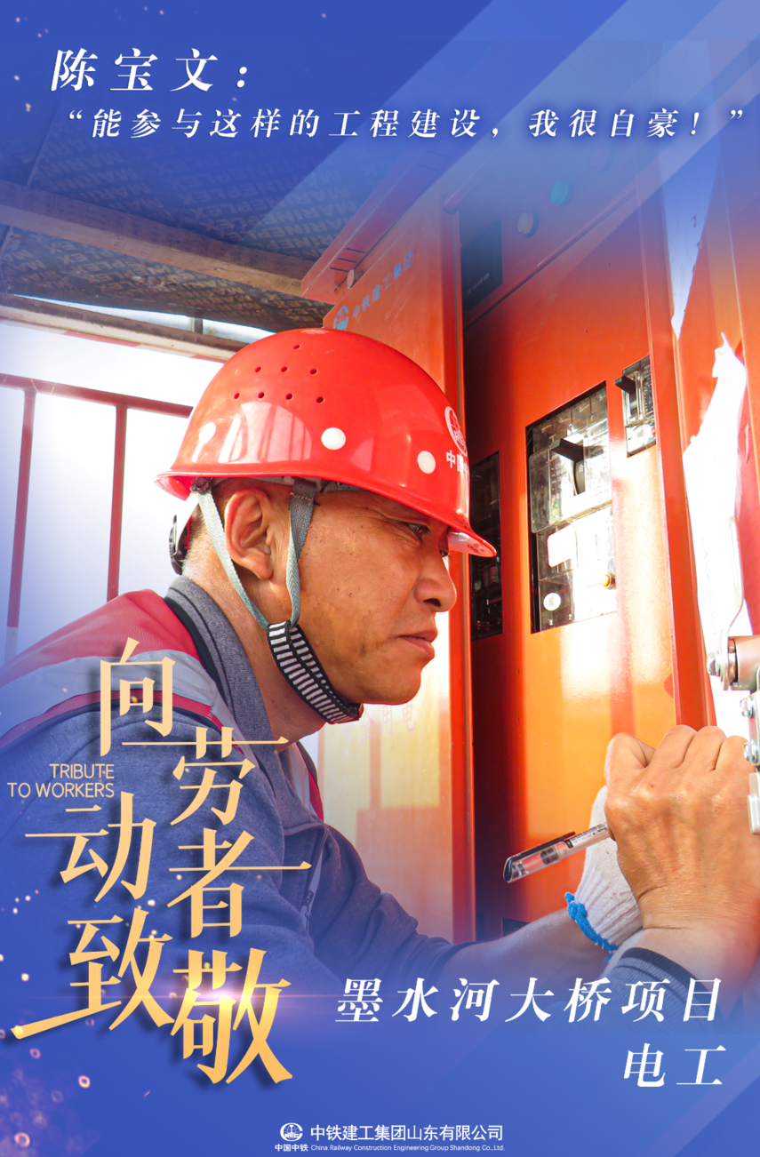 来自辽宁盘锦的陈宝文,是长江路北延工程-墨水河大桥项目的电工,技能娴熟,认真负责,陈宝文常说,“墨水河是这里的母亲河,这个工程自开工就受到附近的居民的重点关注,能参与工程建设,为当地百姓修一座大桥,我十分荣幸和自豪。”