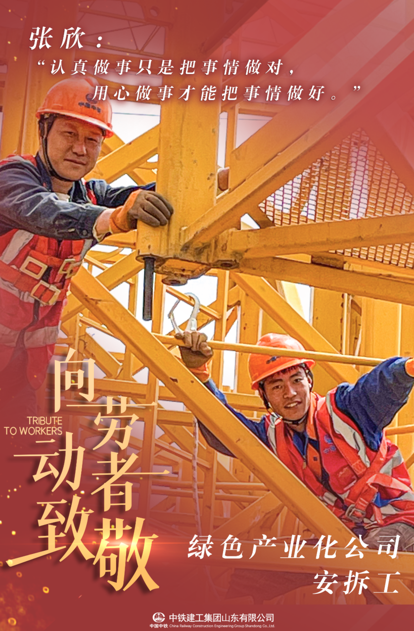 祖籍淄博的张欣,是中铁建工山东公司绿色产业化公司的一名安拆工,主要从事塔吊安全防护用品的安拆,在狭小的作业空间中,他前仰身体,伸长手臂,与空中旋转的塔吊共同舞出施工现场优美的舞蹈。正如他常说,“认真做事只是把事情做对,用心做事才能把事情做好。”