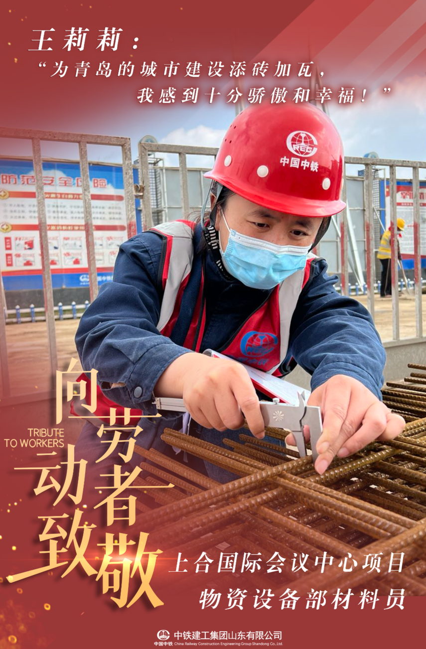 上合国际会议中心项目物资设备部任材料员王莉莉,来自山东曹县,主要从事材料进场验收、保管、发放等工作。五一期间,王莉莉与同事们一起坚守岗位,确保工程建设顺利推进,她说“用我们微薄的力量,为青岛的城市建设添砖加瓦,我感到十分骄傲和幸福!"