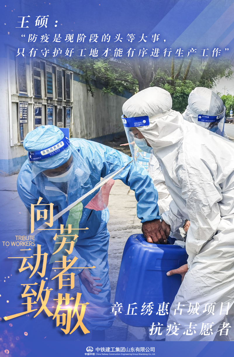 自新一轮疫情突发以来,章丘绣惠古城项目根据地方政府要求进行疫情防控工作,来自山东临沂的王硕,每天全副武装坚守防疫第一线,汗水浸湿全身仍丝毫不松懈,严格按照规章制度进行人员、物资进场核查工作,确保守护好工地大门第一道防线。“防疫是现阶段的头等大事,只有守护好我们的工地才能有序地进行生产工作,我会继续坚持不松懈!”