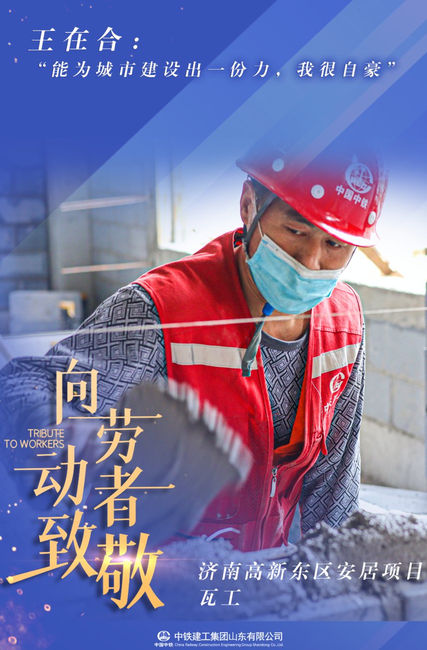来自山东齐河县的王在合,是中铁建工山东公司济南高新东区安居项目的一名瓦工。说起这份工作,王在合说:“他小的时候玩耍就喜欢拿小砖头盖房子,自从出来打工,就干这个工作了,一直很喜欢,能够做自己喜欢的事情,每天都过得很充实。每当看到自己参与建设的高大建筑,心里都觉得很幸福,能为城市建设出一份力,我很自豪。”