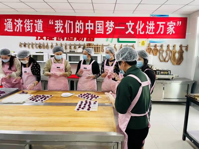 5月7日下午,在母亲节即将到来之际,通济街道妇联组织机关、村居妇女代表到青岛瑞博职业培训学校开展“我们的中国梦—文化进万家”鲜花饼制作活动。