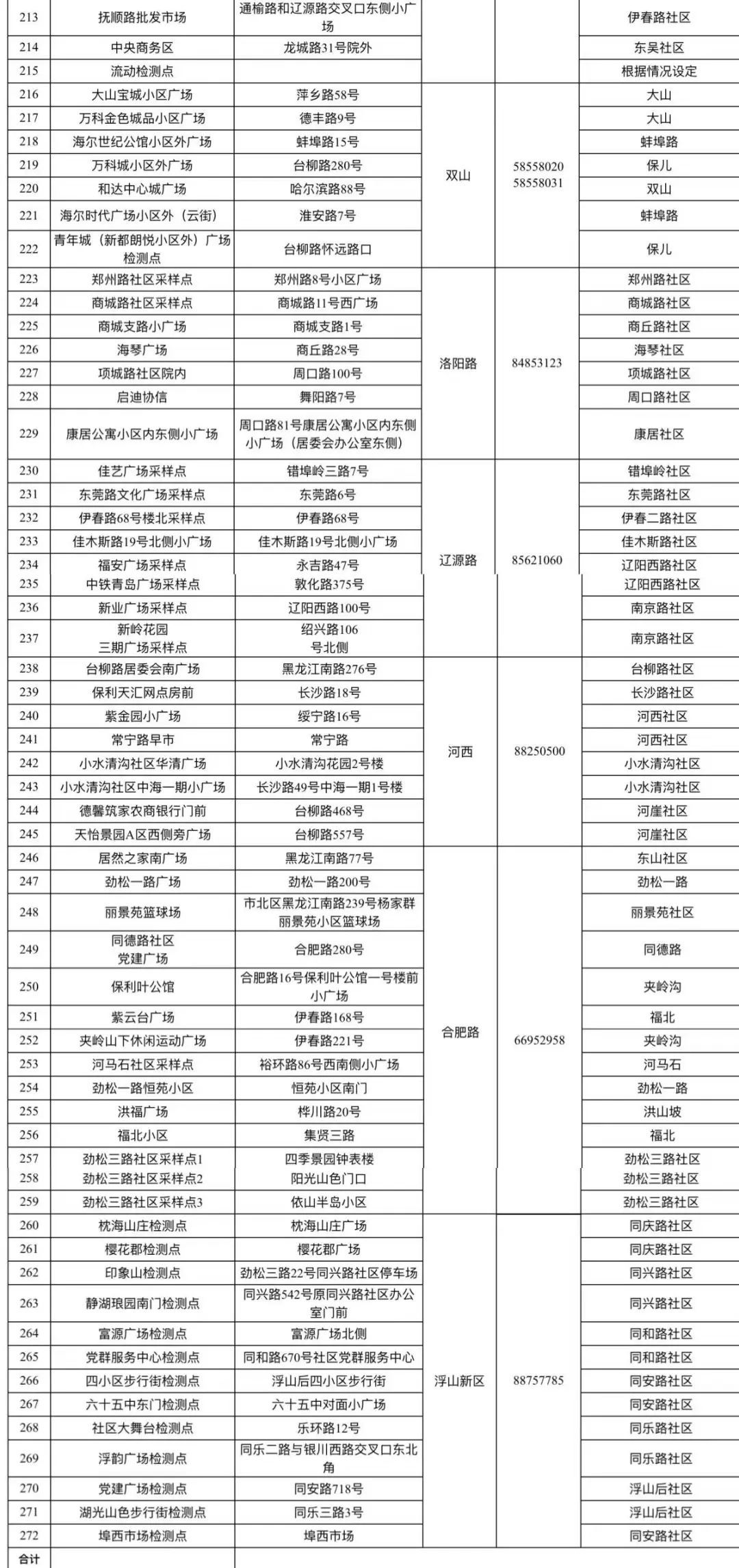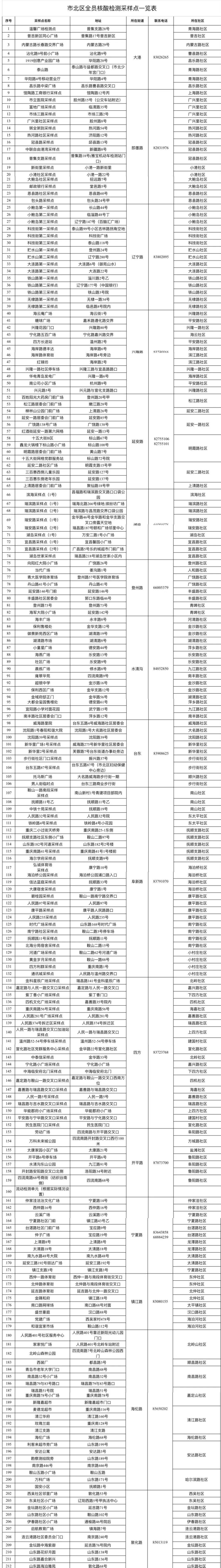 5月10日市北区核酸检测采样点一览表
