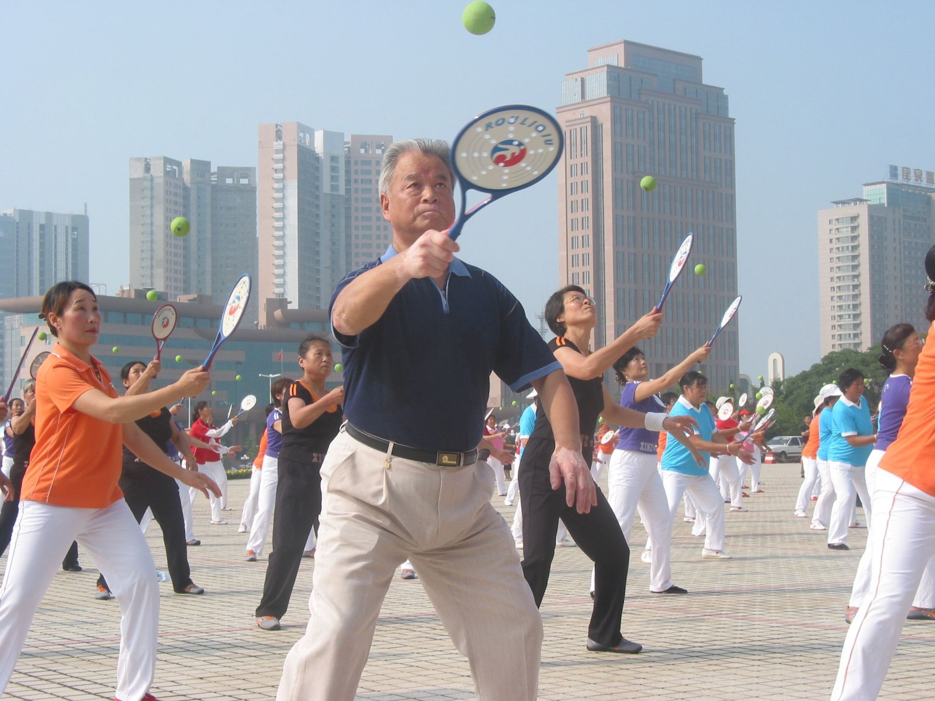 2007年,时任青岛市老年体协副主席、黄岛区老年体协主席的蔡可卿参加柔力球活动。