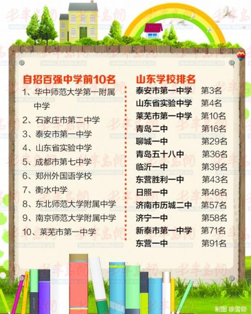 记者从榜单中看到,去年的榜单中,自主招生百强中学排行榜前10名的学校中山东仅有泰安市第一中学、山东省实验中学2所,而今年则增加了第十名的莱芜市第一中学,且山东省实验中学的名次从去年的第6上升到第4。