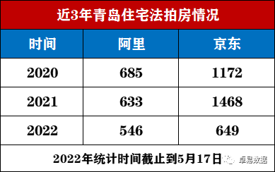 根据从阿里和京东2个法拍平台的统计,青岛近3年的住宅法拍房数量增加明显,2022年近过去四个多月,阿里住宅的法拍房已经接近去年全年,按照目前增速京东平台的法拍房也将高于去年。这仅仅住宅房的法拍,还有未计入的大量的商业、工业房产等。