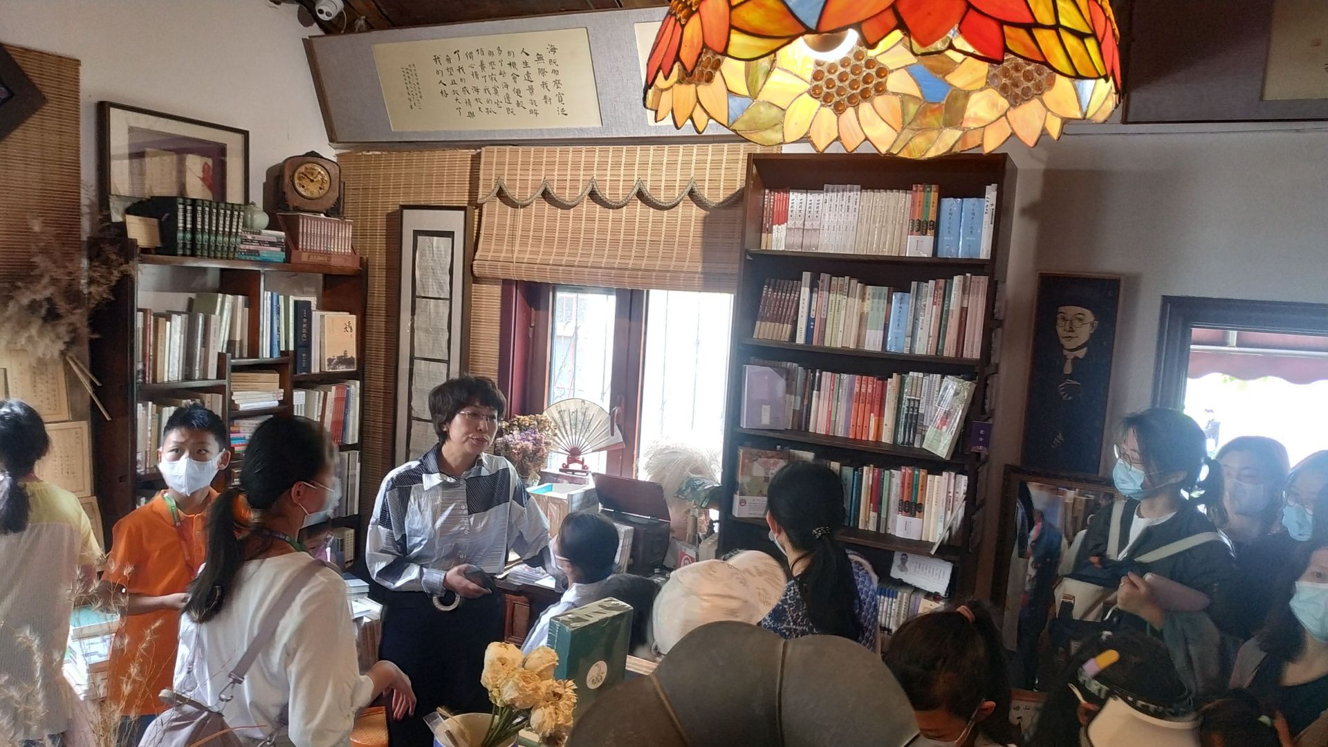 小记者们还参观了复原的“荒岛书店”,当年老舍先生经常到这购书,现在这里展示着《骆驼祥子》以及老舍先生的其它作品。