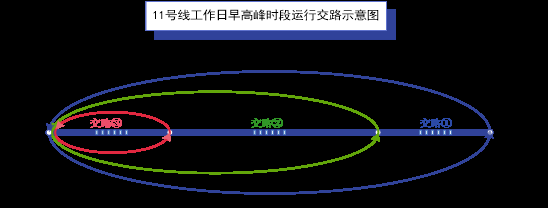 交路的设置主要根据线路性质及客流分布情况制定。11号线客流分布存在明显的不均衡特点,尤其是工作日早高峰,苗岭路往枯桃区段出行比例高达60%以上,简单来说就是平均每10个乘客中至少有6个乘客出行目的地在苗岭路—枯桃之间,因此通过设置苗岭路——枯桃第三类交路,既能满足客流最密集区段的运能需求,又能提高列车使用效率。