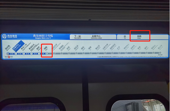 进入车厢,列车车门上方的地图、列车车门旁边的电视屏都会显示该趟列车的终点站。