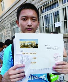 昨日8时50分,青岛二中第一份录取通知书开始发放,毕业于青岛65中的陈璞成为了第一名领到通知书的高一新生。 “我来过二中好多遍了,参加过自招,也参加过二中杯竞赛,可惜没拿到自招名额,最后还是靠分数考进来的。”陈璞中考考了725分,考虑到去年二中的录取线划到了723分,等待今年录取线出来的那几天,他还颇为忐忑,好在顺利被二中录取。