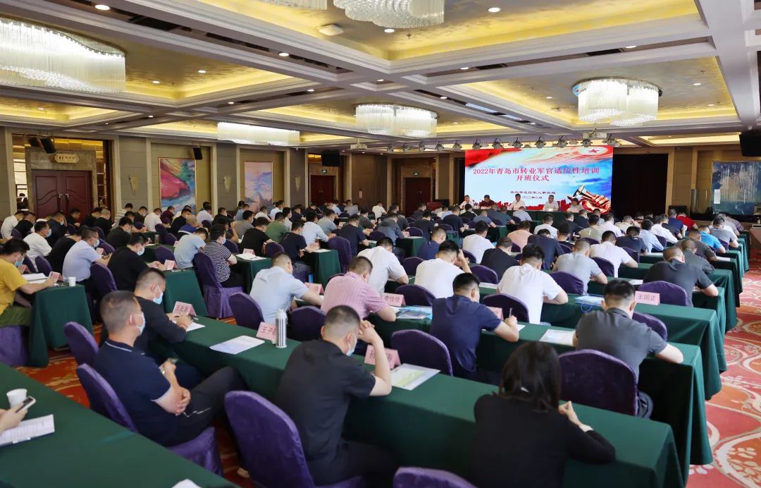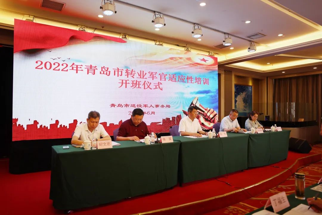 6月6日,2022年青岛市转业军官适应性培训班在海大学术交流中心开班。市退役军人局党组书记、局长孙刚,党组成员、副局长张笑,中国海洋大学产业党委书记侯海军出席仪式。