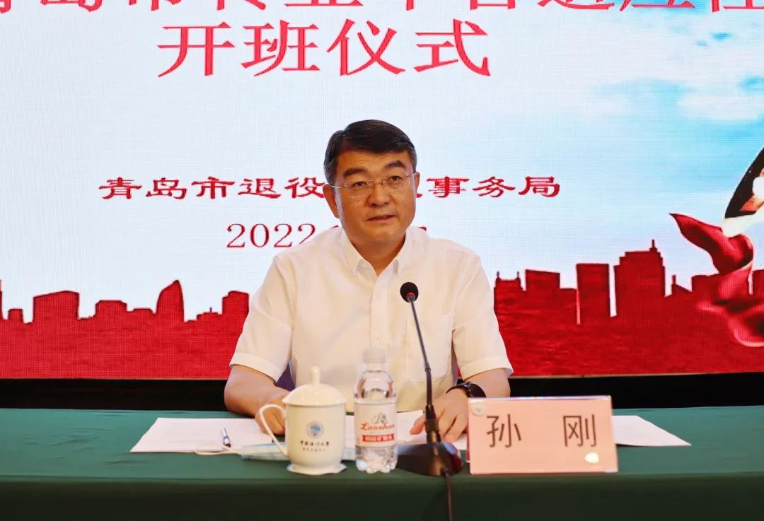 仪式中,孙刚为参训学员讲第一课,与参训学员进行深入交流,对参训学员提出四点要求和殷切希望,一是要深刻认识本次培训的政治意义和现实意义;二是要珍惜机会,学有所获;三是要找准定位,快速融入新环境;四是要强化对党忠诚的政治品格,希望所有的退役军人不忘“听党指挥”的政治本色,保持忠诚担当的“军人气质”,传承红色基因、发扬优良传统,在新的岗位上苦练内功、砥砺前行,为党和人民再立新功,为青岛建设新时代社会主义现代化国际大都市做出新的更大贡献,以优异的成绩迎接党的二十大胜利召开!