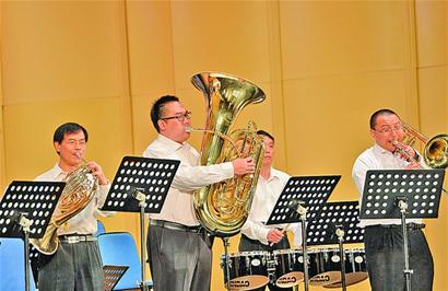 开幕式后举行了管乐音乐会,精彩演奏赢得了现场观众的热烈掌声。音乐会彰显了管乐艺术的普及性和教育性,上半场由担任本届评委的国内顶级管乐大师进行表演,极富动感和视听冲击力;下半场由青岛市各中小学管乐团进行合奏展示,来自市实验小学、嘉峪关学校、鞍山二路小学、青大附中、崂山新世纪学校和城阳实验中学六所学校的管乐团轮番精彩对决,各具特色、富有青春朝气。当中国管乐学会主席、著名指挥家于海指挥六所学校管乐团联袂演奏《红军不怕远征难》时,全场响起壮美的旋律和管乐独具的磅礴气势,将整场管乐音乐会推向高潮。