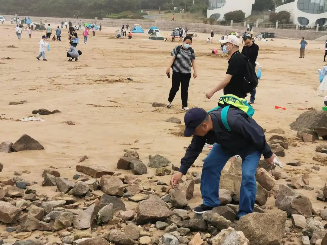 6月3日下午3点,100多名志愿者来到青岛石老人、雕塑园海岸参与净滩活动,以实际行动宣传、践行海洋生态环境保护,呼吁更多的社会力量和公众共同参与到海洋环境保护行动中。