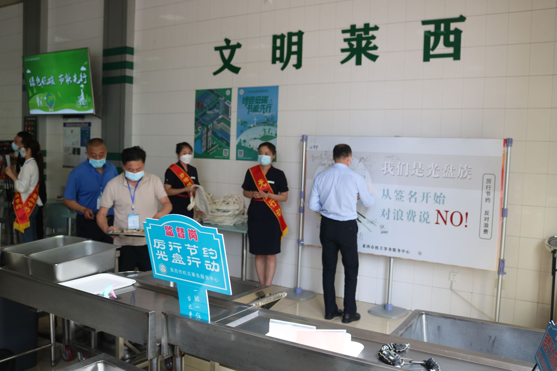 为弘扬中华民族勤俭节约的传统美德,杜绝“舌尖上的浪费”,6月15日,莱西市机关事务服务中心在机关食堂举行“我们都是光盘族”签名承诺活动。干部职工纷纷在承诺墙上签下名字,并表示将以实际行动率先垂范,做到科学点餐、文明用餐,当好“杜绝舌尖上的浪费”的宣传者、表率者和引领者,让光盘成为一种风气,勇敢向浪费说“不”。