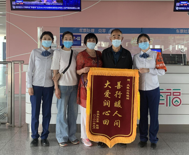 经过一年的康复锻炼,乘客身体逐渐康复,终于送出了“迟到”一年的锦旗。乘客的女儿握着车站员工的手说道:“我父亲这一年一直念叨着要当面来感谢大珠山站的帮助,这不身体一有好转就赶紧过来了。”