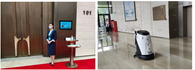 青会高度重视疫情防控工作,设置人员核酸检测专区,并在入口处设置无感红外测温仪器,时刻监测健康状态;保障口罩、消毒洗手液等防疫物资供应充足;保持机房、系统和电梯轿厢每日消毒;使用智能机器人对场馆进行无死角消毒清洁,为与会宾客提供了安心、放心的参会环境。