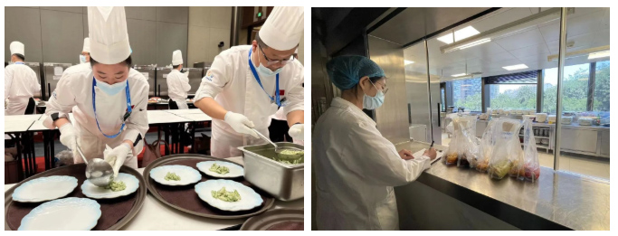 凸显海洋特色的欢迎晚宴于峰会开幕式当晚完美呈现,传承千年的竹条编织通过扭曲造型,犹如起伏的波涛连绵不绝,又如交融的无限大符号,代表合作发展潜力永久持续;手作软陶泥塑的海鸥凌波海面寓意顺意吉祥,搭配时尚插花凸显本场特色。青会团队预先准备5套峰会菜单,并在本次峰会中严把食品安全卫生关,共计完成20个样品水果、蔬菜的农药残留检测,包含酒水在内的共计39个样品留样备查,严格守护宾客“舌尖上的安全”。