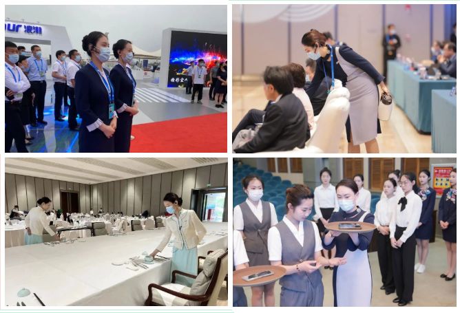 此次峰会期间,青会服务团队随时响应会议要求,积极应对频繁的转场挑战,累计翻台50余次,平均每人每天工作时间超过12小时,展现了良好的应急处理能力和高度的团队合作意识,延续了“上合速度”和“青岛服务”。“台上一分钟,台下十年功”。峰会前,青会团队反复打磨服务细节,下足“绣花功夫”,开展10余次内部演练,组织参与峰会服务的职业院校学生总计80余小时的系统培训,严格规范每名服务人员的走位角度、步幅速度、手位高度等,完美展示了无微不至的青会服务,得到与会来宾的一致称赞,彰显了青会人独特的风采。