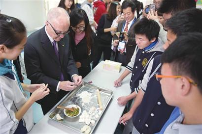 据了解,基德兰德教授还在九中南校区食堂和高三、国际部的学生代表,一起参与了一个别开生面的环节:包饺子,并将一枚糖果包入饺子中,作为幸运饺。