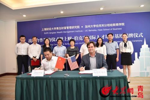 早在2014年12月,上海财经大学便与青岛“结缘”——签署战略合作框架协议,在青岛共建上海财经大学青岛财富管理研究院。“上海财经大学青岛财富管理研究院一直在发挥财经类专业优势,以人才培养为突破口,助力青岛发展。”上海财经大学校长樊丽明表示,在人才培养上,上海财经大学青岛财富管理研究院延续了上海财经大学精英化教育、国际化及专业化发展等特色,培养高端专业人才。而“上财(青岛)-伯克利(哈斯)国际人才培养基地”的成立,则标志着上海财经大学青岛财富管理研究院在青岛迈出了探索高级金融人才国际化培养模式的第一步。上海财经大学青岛财富管理研究院执行院长姜晖表示,未来四到五年内,双方将在履行协议、实现双赢的基础上,进一步探索举办双学位教育、建设国际商学院等中远期目标构想。
