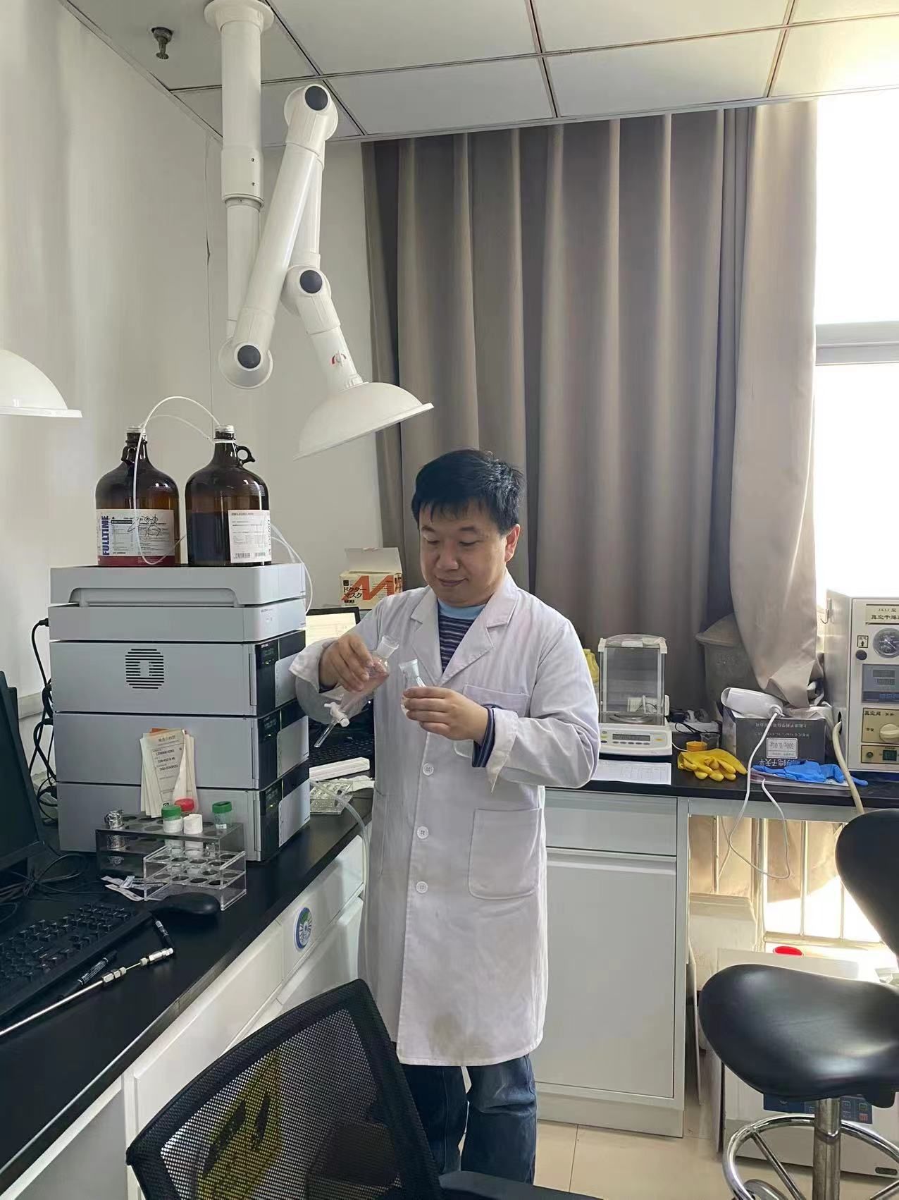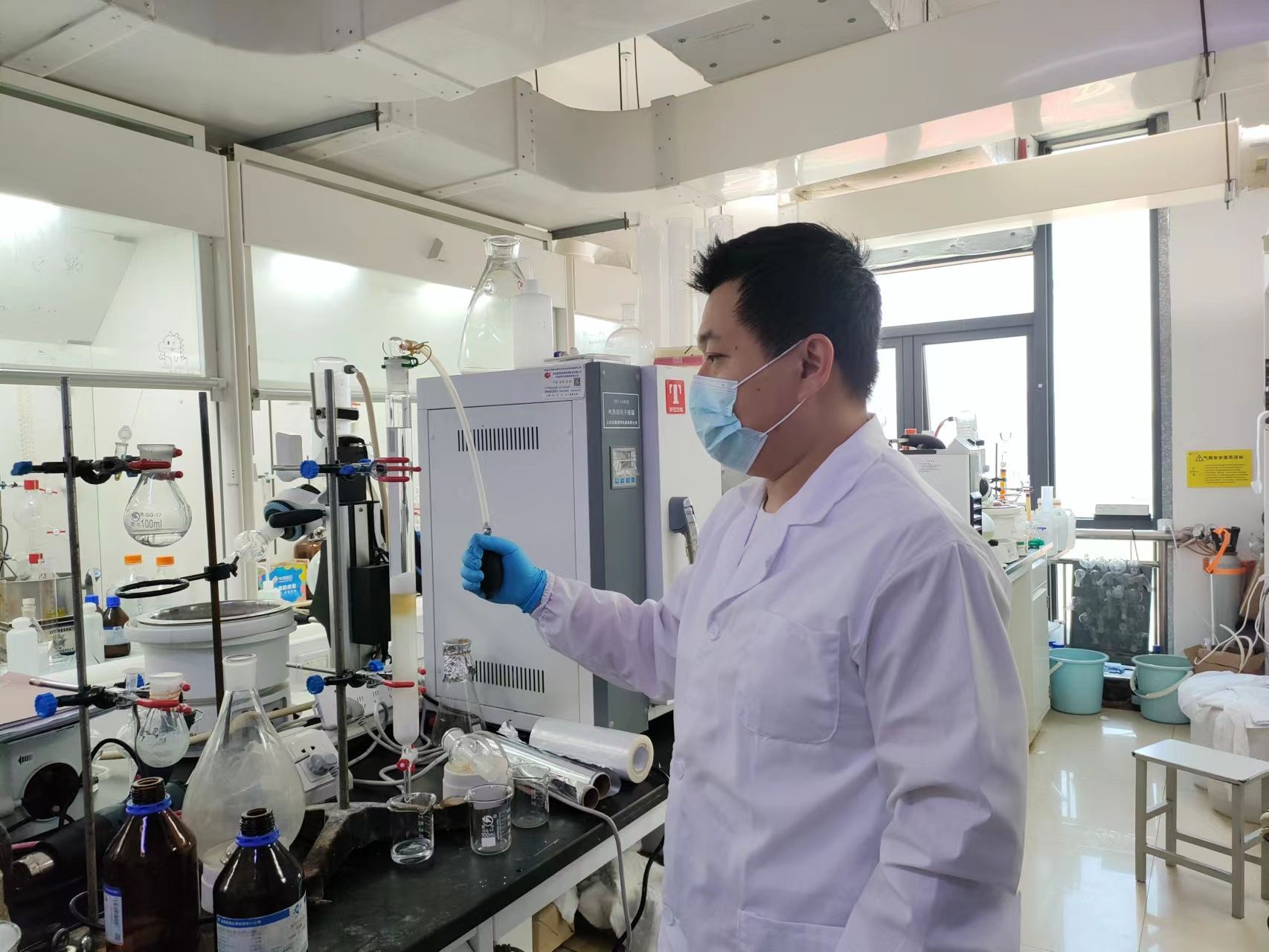 栾业鹏潜心实验室研究