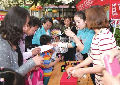 在“六一”儿童节全园开展了“乐享童年、善举微中”自制民族工艺品义卖活动,增进小朋友对少数民族文化的认识和了解,锻炼他们的动手能力和社会实践能力,搭建了交流和展示的平台。在老师的带领下,孩子们和家长一起亲手制作各式各样、具有民族特色的精美手工艺品。义卖现场异常火爆,筹得善款近8000元,全部捐赠给红十字会,资助少数民族贫困家庭的孩子上学。园长翟培杰表示:“一路走来,我们更深刻地认识到多民族文化是中华民族精神和情感的重要载体,让幼儿了解我们是一个多民族的国家,懂得以尊重、理解和宽容的态度,接纳不同的民族。多民族文化中还有许多精髓等待我们去传承和弘扬,我们将一如既往在这片多民族文化教育的沃土中,不断探索与耕耘,收获更多的快乐和成功。”