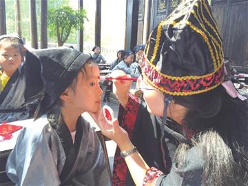 宁安路小学老师为学生点朱砂。本报记者 王墨然 摄