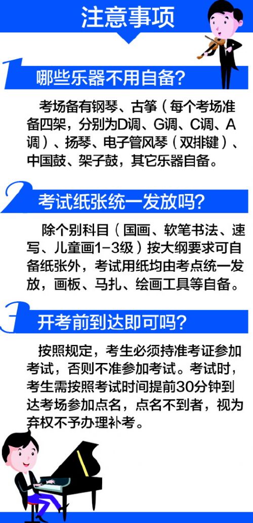考生和家长需要注意:10月15日开始成绩查询,请考生登录山东省学校艺术教育网自行查询,并打印“成绩查询表”。凡成绩合格者,由省考试办公室统一颁发等级证书。领取方式有两种:一是,考生根据查询成绩时通知的时间到现场领取合格证书;二是,对于在规定时间内不到现场领取合格证书的考生,将采取快递派送且货到付款方式,邮寄地址以网上报名时预留的为准。