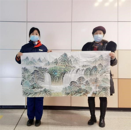 看着失而复得的包裹,张女士拉着刘兴玲的手激动地说:“姑娘,谢谢你们啊!这包里的现金是我刚发的年终奖金,还有一幅我用了一个月画完的山水画,真的是太感谢你们了呀!”说着便将包里的画拿出,执意赠予车站工作人员,并与车站工作人员立下了美好的约定:“过段时间,我一定亲手再绘几幅画送给你们!”