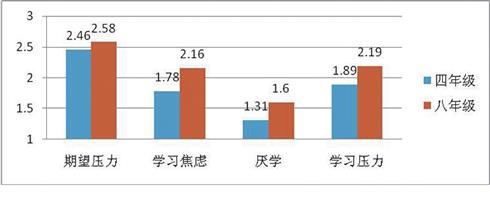 过多的课业负担并不会有效提高学生的成绩,反而会减少学生的睡眠和运动时间,并不利于学生的健康成长和全面发展。监测结果显示,四、八年级学业压力水平较高的学生的平均数学成绩比压力水平较低的学生分别低10分和52分(标准分计分)。