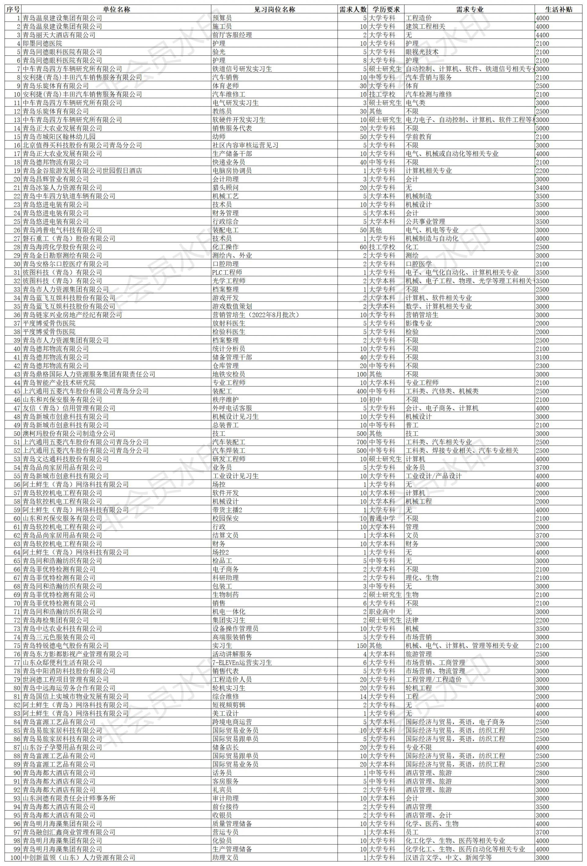 为全力迎战就业季,加速推动青岛市2022届高校毕业生更加充分更高质量就业,日前,青岛市人社局联合市教育局、市财政局等10部门下发《关于实施就业见习万岗募集计划的通知》,正式实施“就业见习万岗募集计划”。