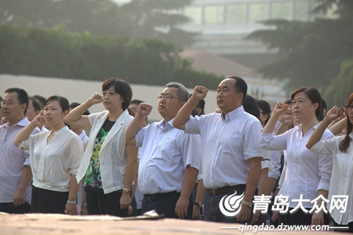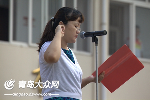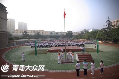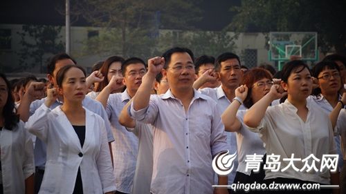 大众网青岛9月5日讯 (记者 刘秋怡)“忠于人民的教育事业,履行教师的神圣职责,贯彻国家的教育方针,全面实施素质教育……” 9月5日上午在青岛实验高中的操场上举行的周一升旗仪式上,青岛实验高中全体教师,面向国旗庄严宣誓,郑重承诺履行教师职责、落实教师誓词。