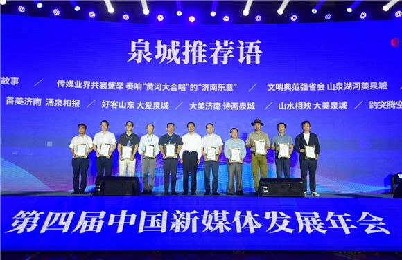 值得一提的是,本届年会特别设立聘请“泉城推荐官”环节。受济南市委托,中国新媒体发展年会组委会从新媒体业界众多行业翘楚、媒体大咖及网络大V中,推选出10名“泉城推荐官”为济南“代言”。活动现场,戴龙成为新晋“推荐官”颁发了证书,希望他们从不同领域、不同切口把济南最靓丽的名片宣传好、推介好,助推全国文明典范城市创建。