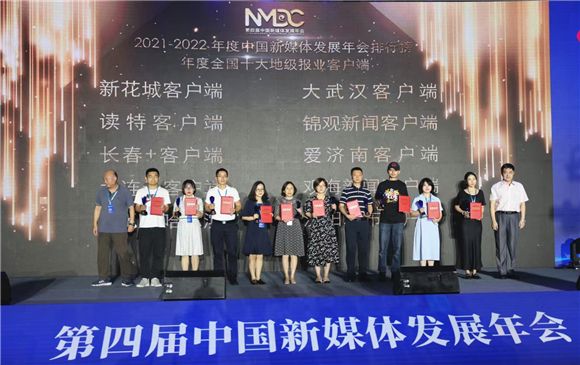 作为年会的重头戏——第四届中国新媒体发展年会年度新媒体榜单发布备受关注。以北京清博智能科技公司对榜单涉及单位的大数据为基础,结合各排行榜的不同特点,针对2021-2022年度新媒体7个方面的发展,经业界推荐、专家初评、组委会终评,大会确定了7个年度新媒体榜单和年会年度特别奖,并在现场发布。其中,济南日报报业集团旗下的新黄河客户端、经济观察报、爱济南客户端分别获得2021-2022“年度全国十大省市级新闻客户端“与2021-2022”年度全国十大地级报业客户端“三项大奖。