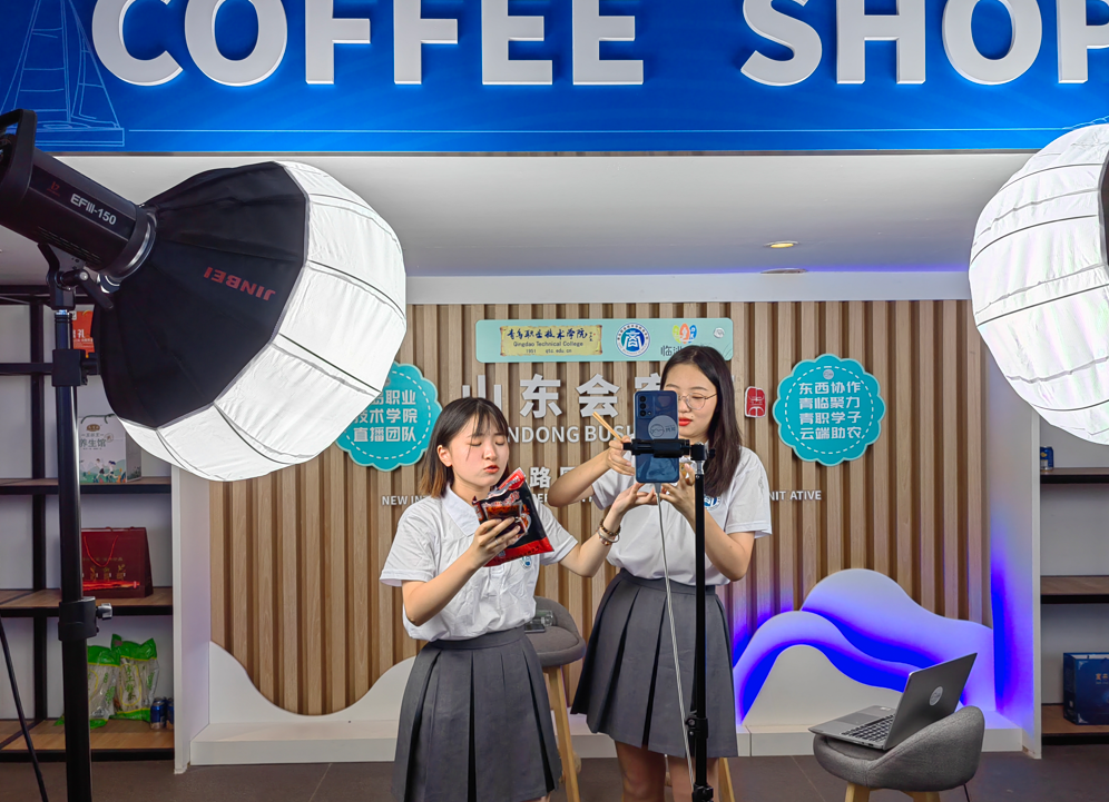青岛职业技术学院商学院的网犀直播团队为定西农产品直播带货