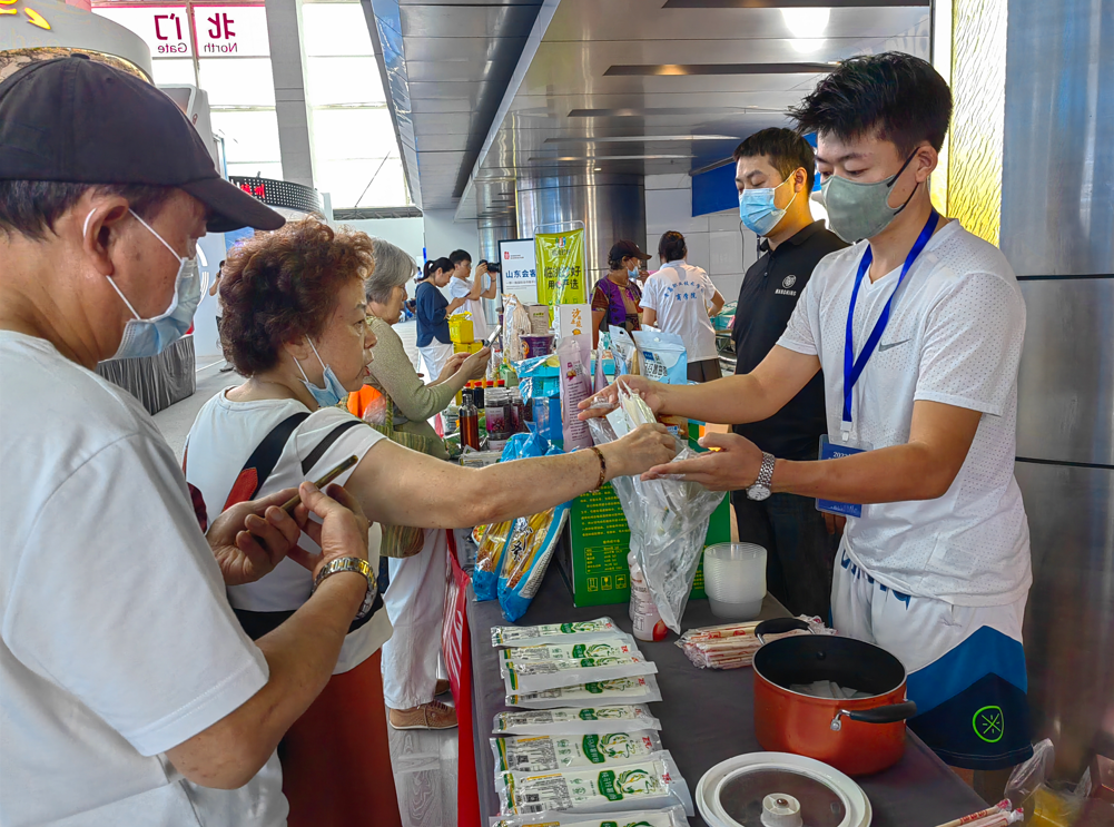 现场采购签约、美食品鉴、直播带货等活动精彩纷呈,10家青岛企业与10家协作帮扶地区企业现场签订价值1975万元的农特产品采购协议,千余种协作帮扶地的质优价平、绿色健康农特产品上架60余个展位,吸引众多采购商和消费者前来洽谈和购买。