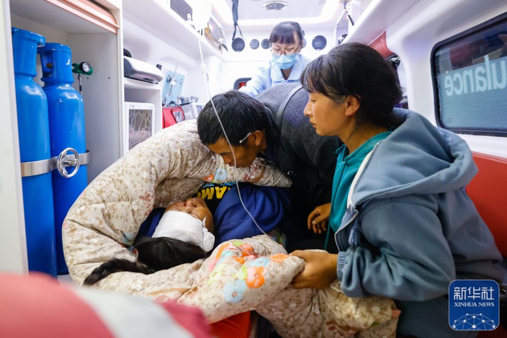 9月5日晚,在四川甘孜州泸定县磨西镇的受灾群众临时安置点,人们转运受伤群众。