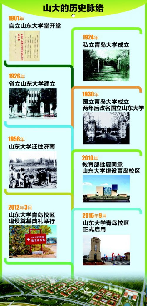 在离开青岛半个世纪后,山大再度归来,2010年12月8日,教育部《关于山东大学征地建设青岛校区有关事项的批复》:“同意你校在青岛鳌山卫科技区新征3000亩土地,建设青岛新校区”。2012年3月17日,山东大学青岛校区建设奠基典礼举行,今年9月,迎来第一批新生。