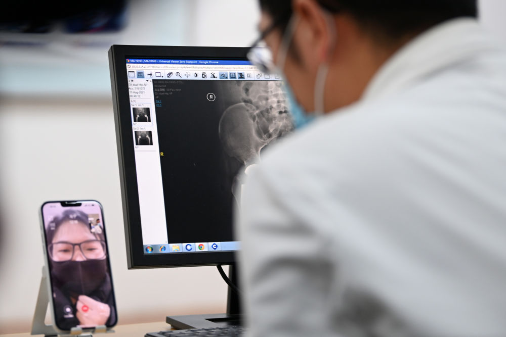 2021年12月14日,在天津医科大学总医院,医生为患者进行线上复诊。新华社记者 李然 摄