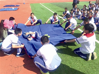 图为青岛五十七中的学生们日前接受安全应急体验培训。 傅学军 摄